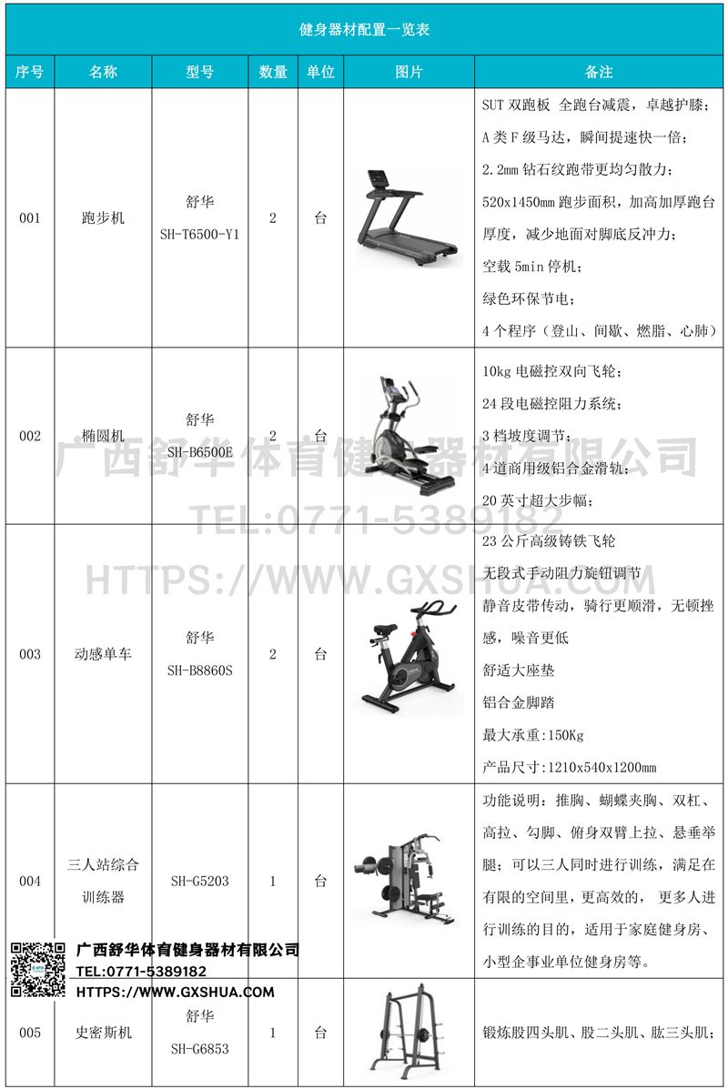 史密斯机(1台),多重可调节练习椅(1台),6付哑铃套组(1套),可调哑铃凳(1张),可以实现对不同肌肉群的针对性训练,满足肌肉训练需求,全方位激活身体机能。