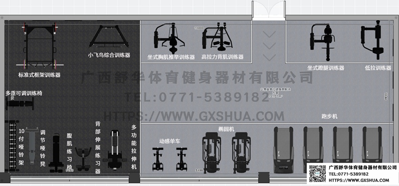2.力量训练器械区(约20平方米)