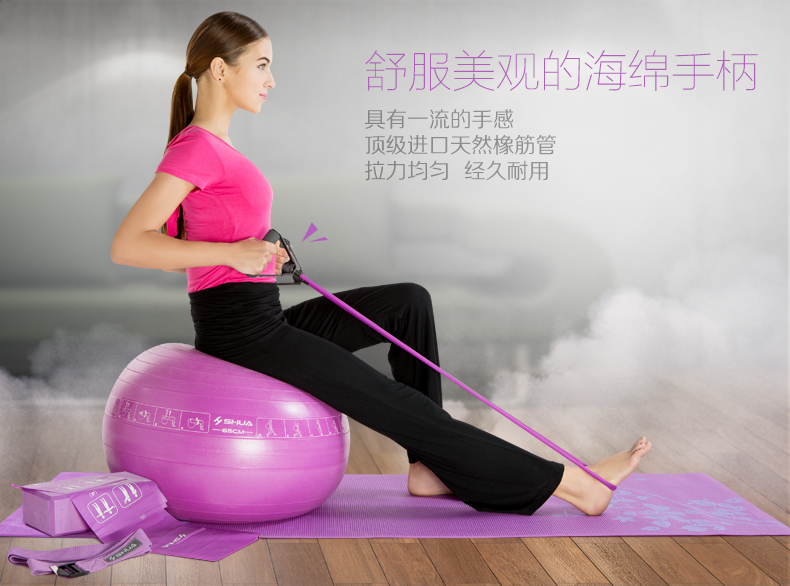 尺寸:65cm瑜伽球+瑜伽垫173x61x0.4cm+瑜伽伸展带+一字拉力器1200X12X6MM+弹力带120x15x0.3mm+双向打气筒