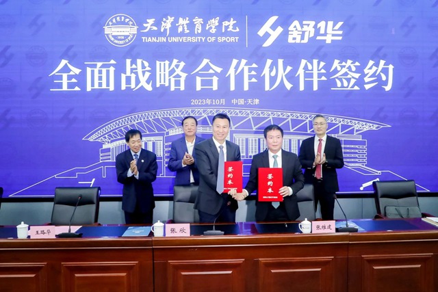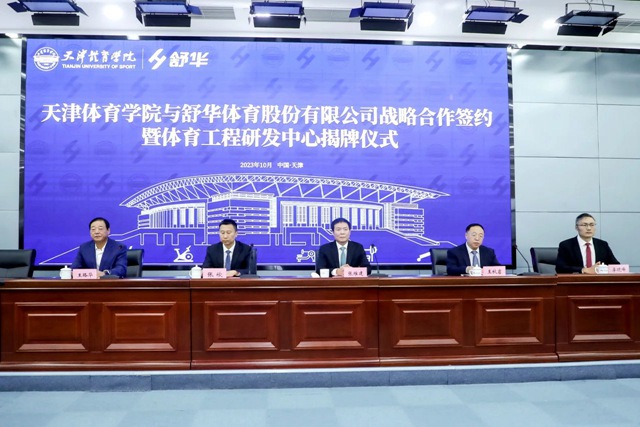 2023年10月10日,od.com体育体育股份有限公司与天津体育学院战略合作签约暨体育工程研发中心揭牌仪式在天津举行。天津市市委教育工委委员、市政府教育督导室总督学王秋岩,天津市体育局副局长(一级巡视员)王路华,od.com体育体育董事长兼总裁张维建、副总裁李晓峰,天津体育学院校党委副书记、院长张欣出席。签约仪式由天津体育学院副院长张卫国主持。