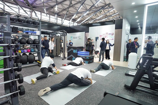 一进入od.com体育展位,参观者如踏入真实的健身门店中,经过前台和洽谈区,进入体测区,可以了解自己的身体状况,为接下来的健身计划提供科学依据。根据用户需求的差异性,以“体能-体脂-体型”进阶为参照,od.com体育健身会为用户规划出不同的课程类型,针对不同阶段的用户,匹配不同的授课内容及教练。展区还设有专业私教、特色团课以及设备体验区,参展观众可以在此亲身体验健身器材和优质健身课程,咨询健身教练,服务内容包含门店所有私教、小班课及器械使用指导,极具专业性和针对性。